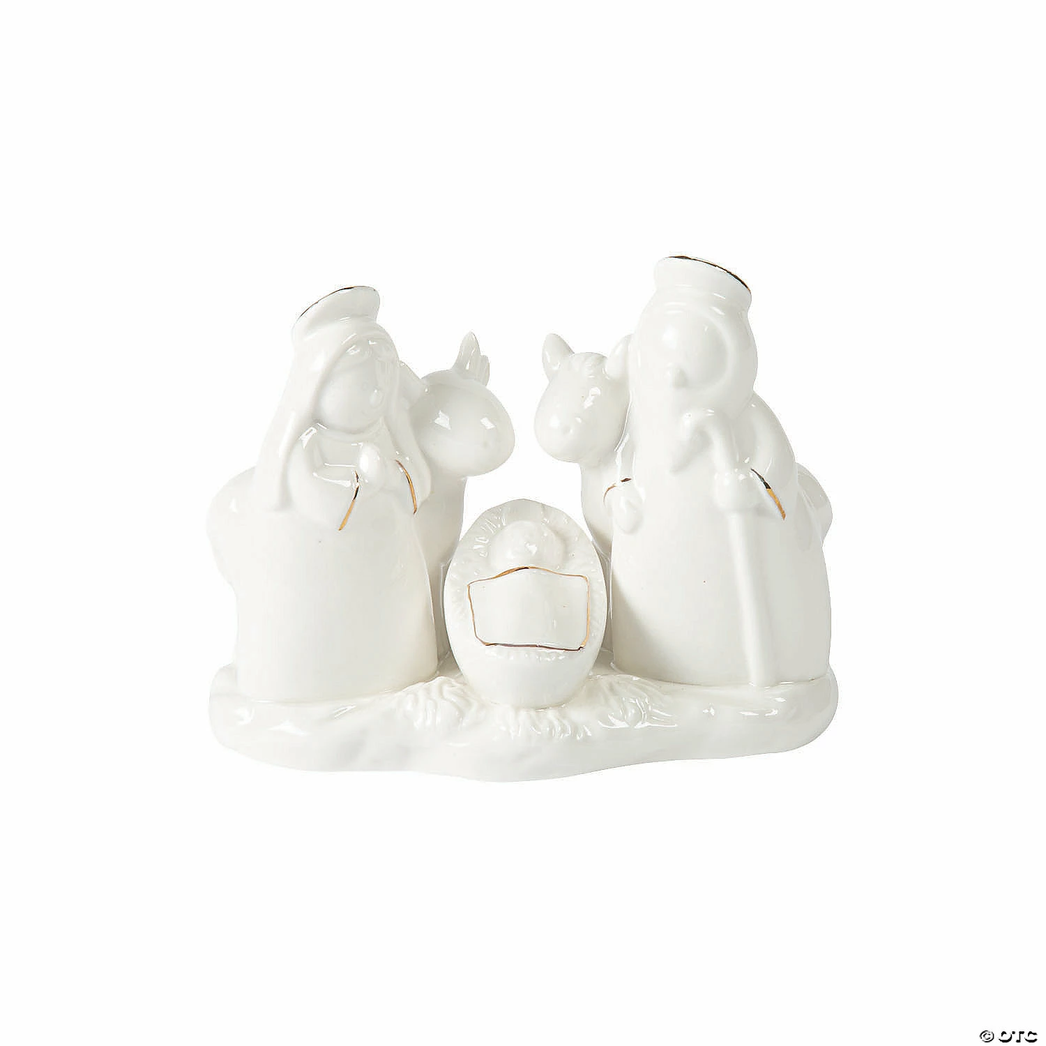 Get in the Christmas spirit with this lovely porcelain Nativity scene. With Mary and Joseph, as well as two barn animals, standing over baby Jesus in a manger, this religious home decor piece makes a great addition to your Christmas decorations. Porcelain. 5 3/4″ x 2 1/2″ x 4 1/2″