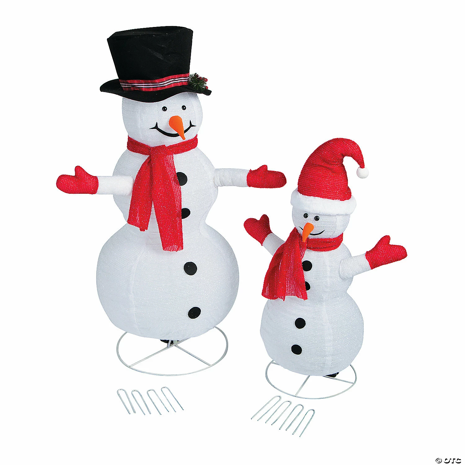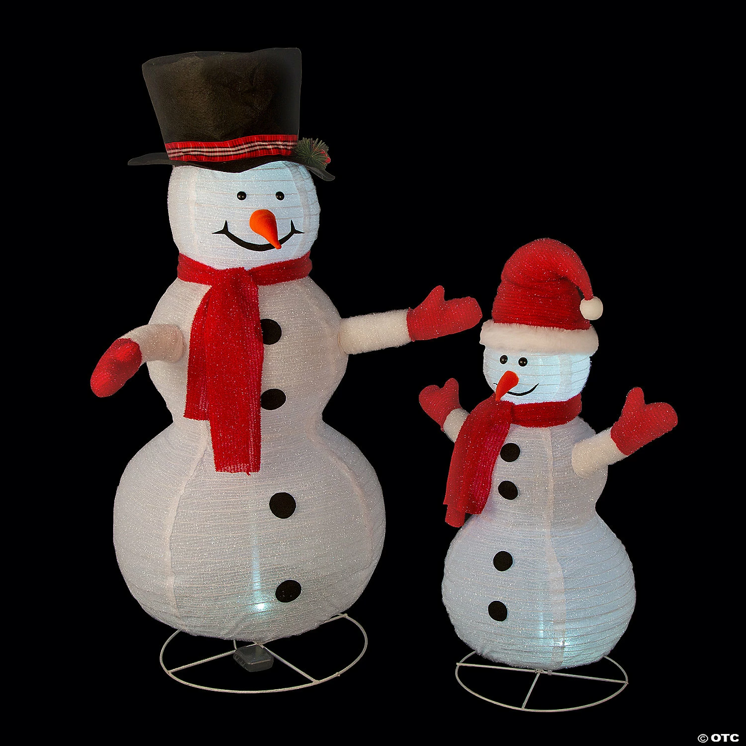 Your yard decorations get an upgrade with this delightful pair of snowmen! Both snowmen are festively dressed for the Christmas holidays and will light-up your outdoor holiday display. Add these Christmas decorations to your yard for a merry presentation. (2 pcs. per unit)Includes:• 1 Polyester & Metal Large Outdoor Light-Up Snowman Christmas Decoration (4 ft.)• 1 Polyester & Metal Small Outdoor Light-Up Snowman Christmas Decoration (3 ft.)• Assortments are subject to change at any time and may vary from picture shown. Substituted items will be similar in nature.
